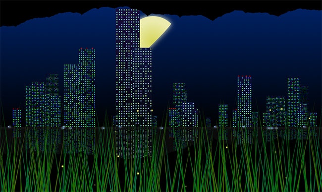 城市高楼灯光夜景Canvas特效