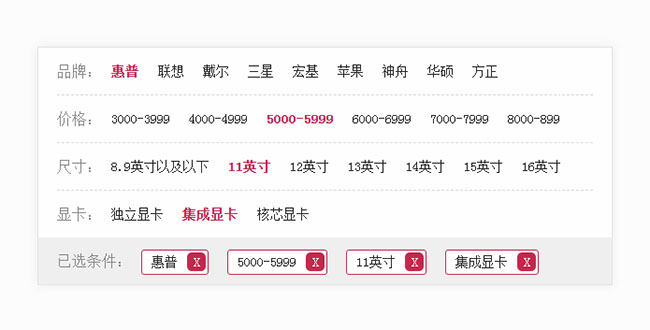 js列表商品条件筛选代码