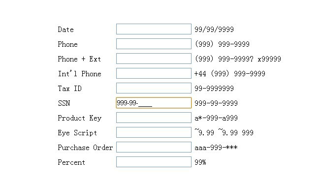 jQuery掩码文本输入框 jQuery掩码文本输入框网页特