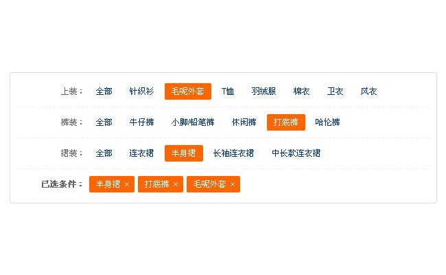 jQuery淘宝商品列表多条件查询