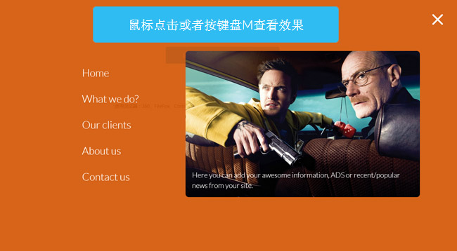 jQuery右侧弹出全屏覆盖菜单