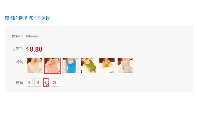 jquery商品尺寸价格选择