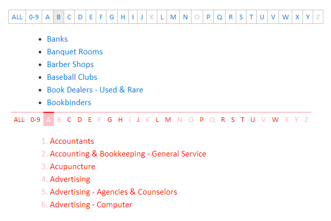 jquery按字母顺序过滤列表