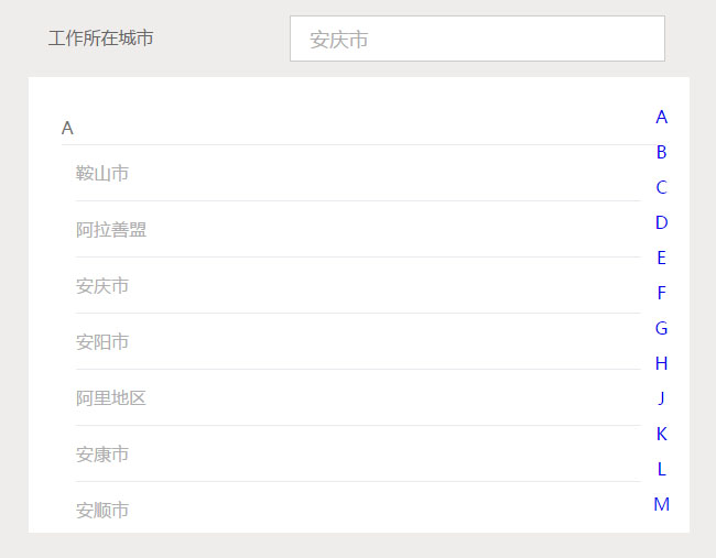 zepto.js移动端城市选择插件