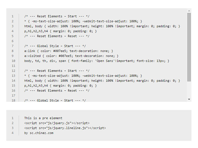 jQuery自动生成代码行号特效