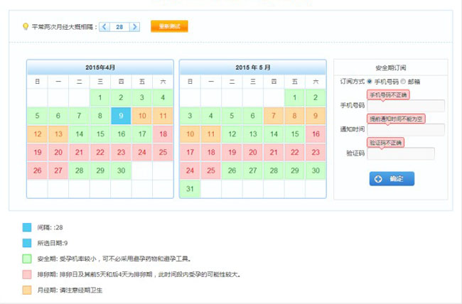 jquery女性月经安全期计算器代码