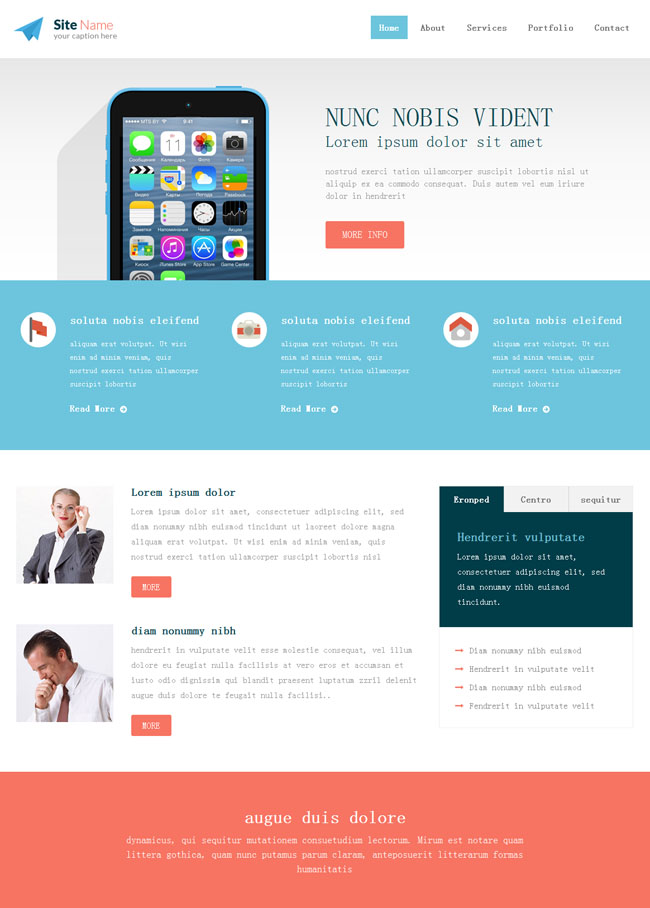 浅蓝色扁平APP企业模板