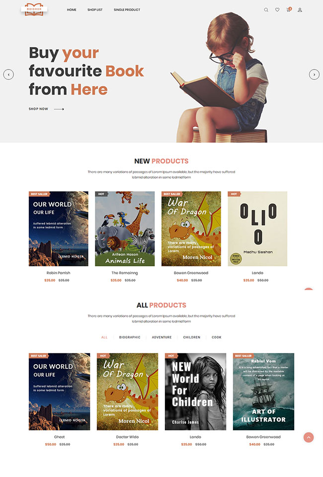 儿童读物网上商店HTML5模板