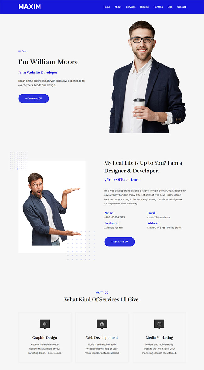 蓝色风格个人简历网页模板