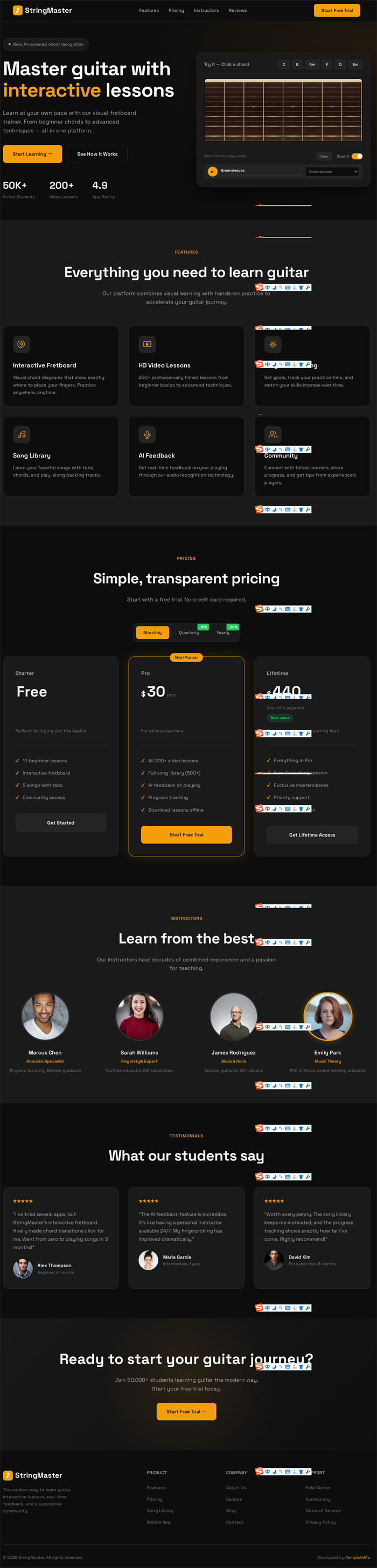 交互式的吉他学习平台网页模板