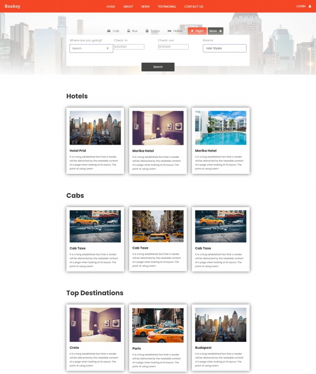 旅行酒店预定汽车出租服务网站模板