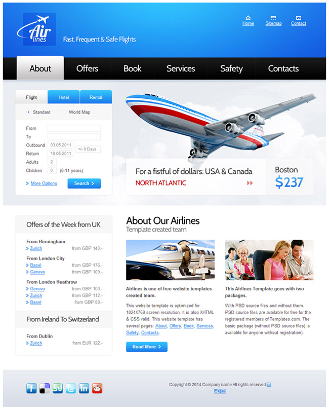 大气蓝色航空公司html5模板