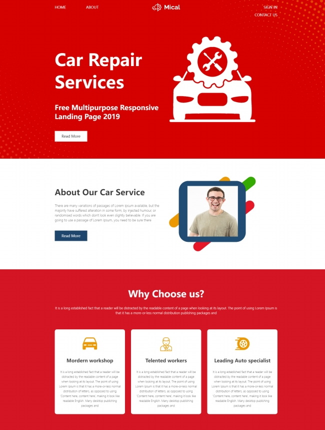 汽车维修服务响应式登录页模板