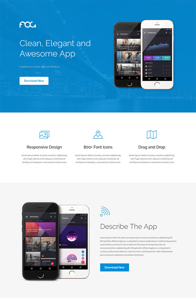 蓝色应用程序展示网页面模板