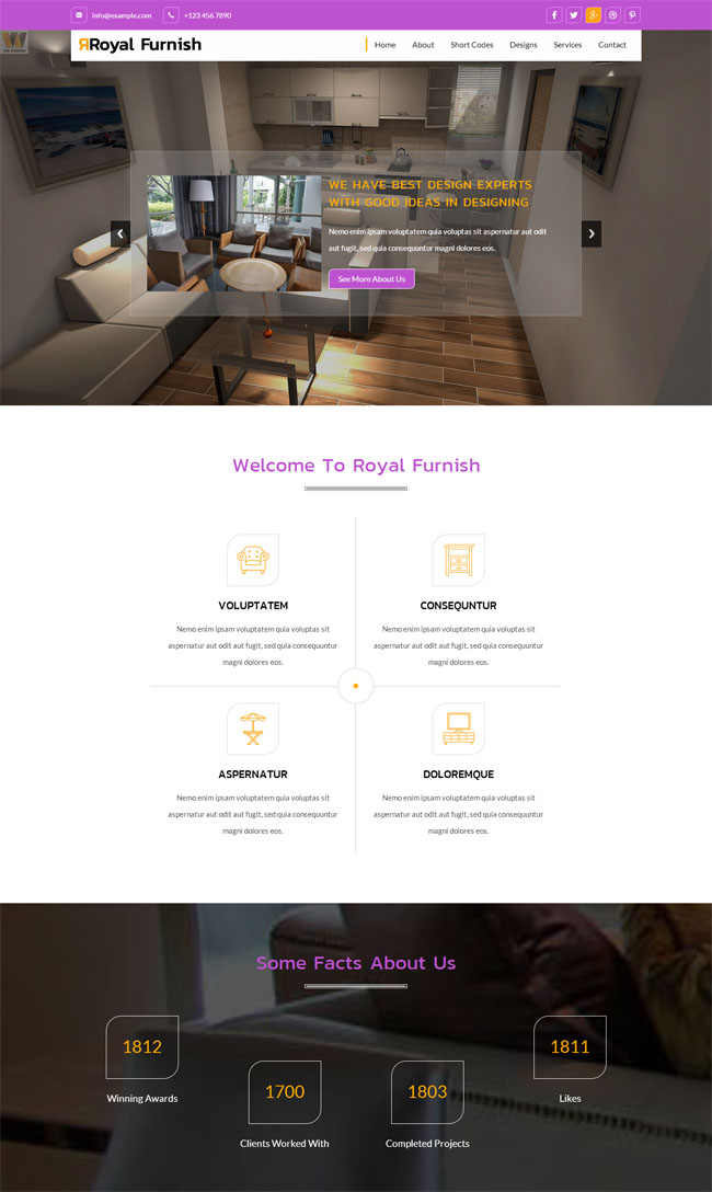 紫色室内家居装修网站模板
