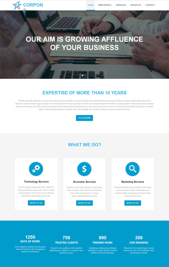 蓝色大气商务办公网站模板