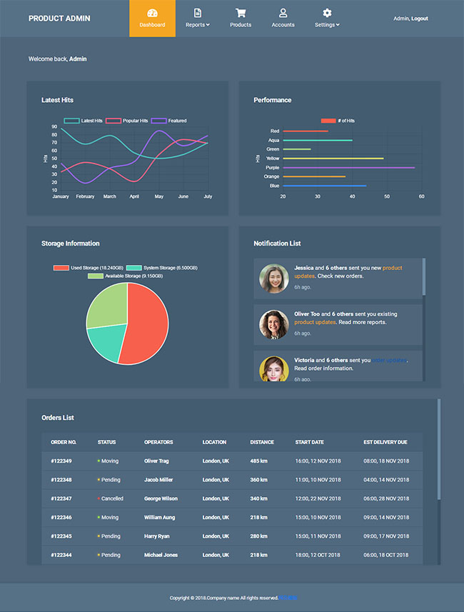 深蓝色后台系统ui管理模板