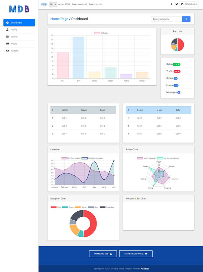 MDB图表统计后台模板