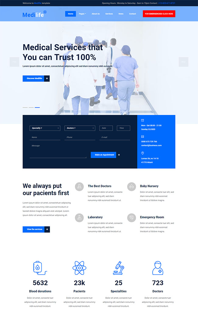 蓝色医疗保健HTML5模板