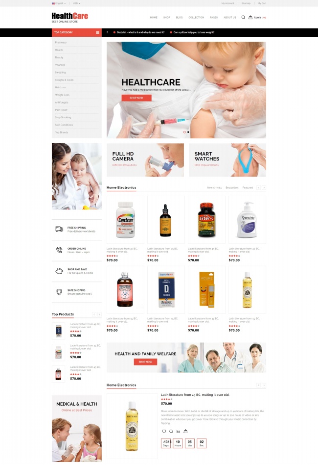 医疗保健药品销售商城模板