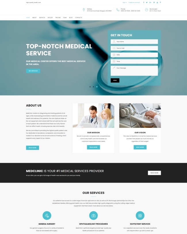蓝色医疗服务中心网站模板