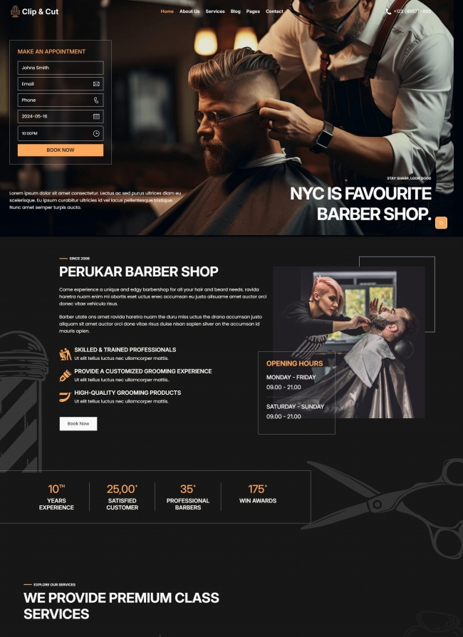 高端理发店预约服务网站模板