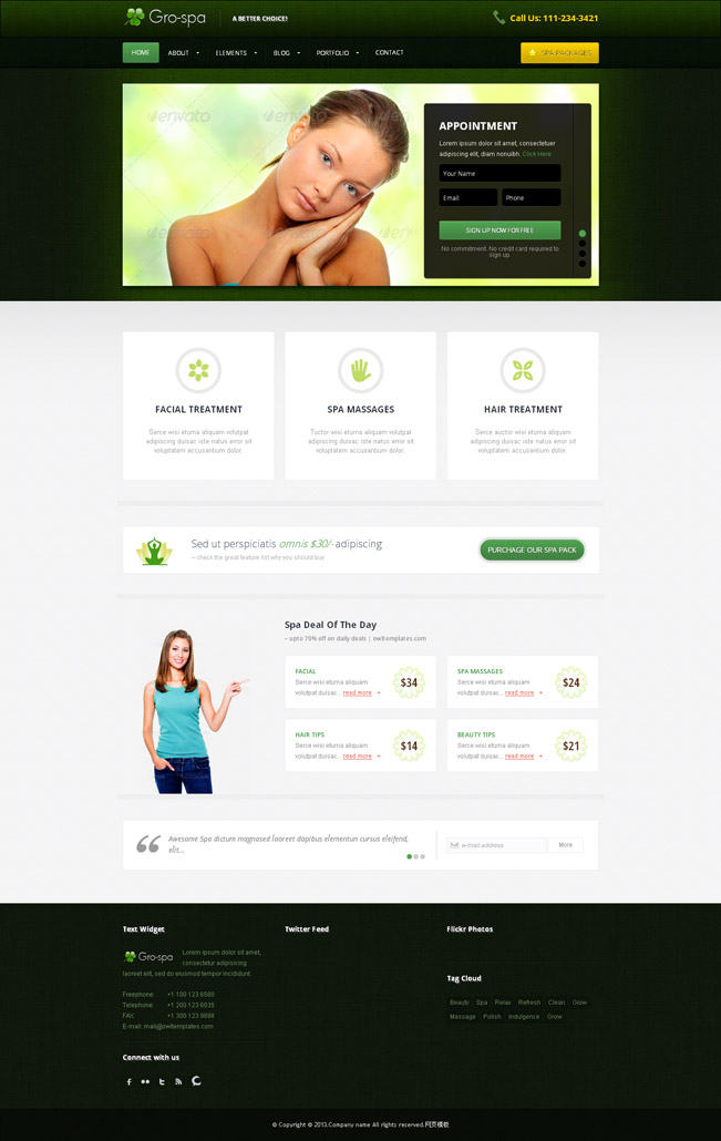 SPA会所绿色清新网站模板