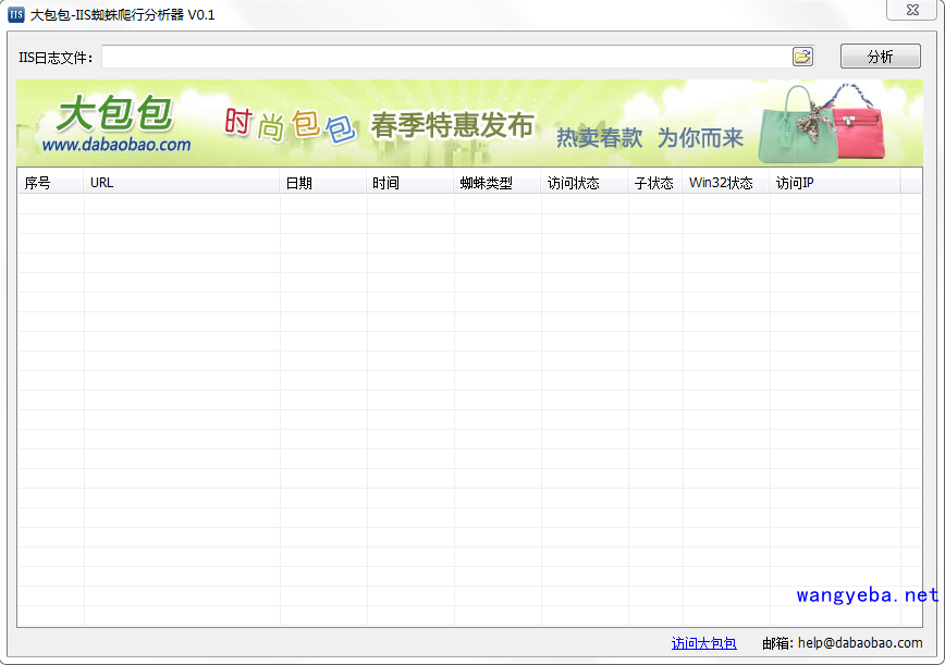 大包包-IIS蜘蛛爬行分析器可以好的统计IIS网站的.log格式文件中的搜索引擎蜘蛛的访问次数,协助站长了解搜索引擎对你网站的爬行情况,