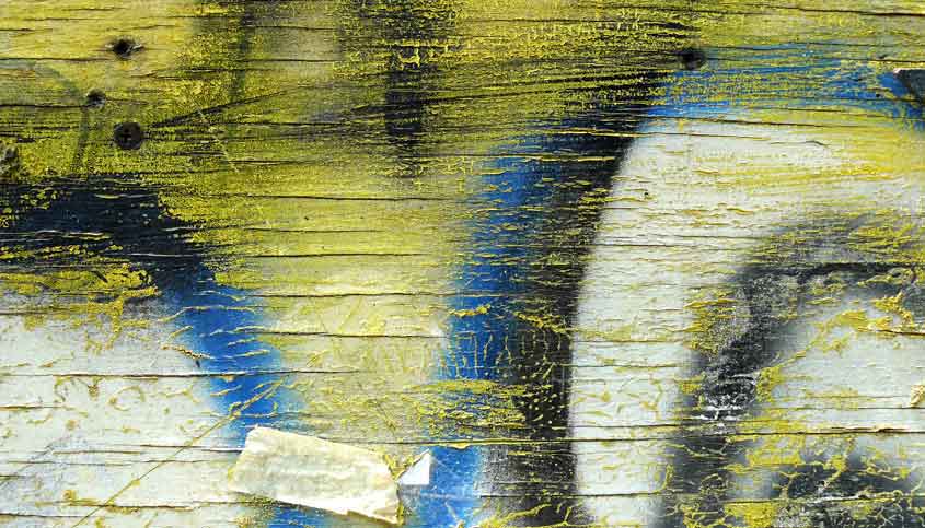 Some wood with graffiti on it and some kind of paper.