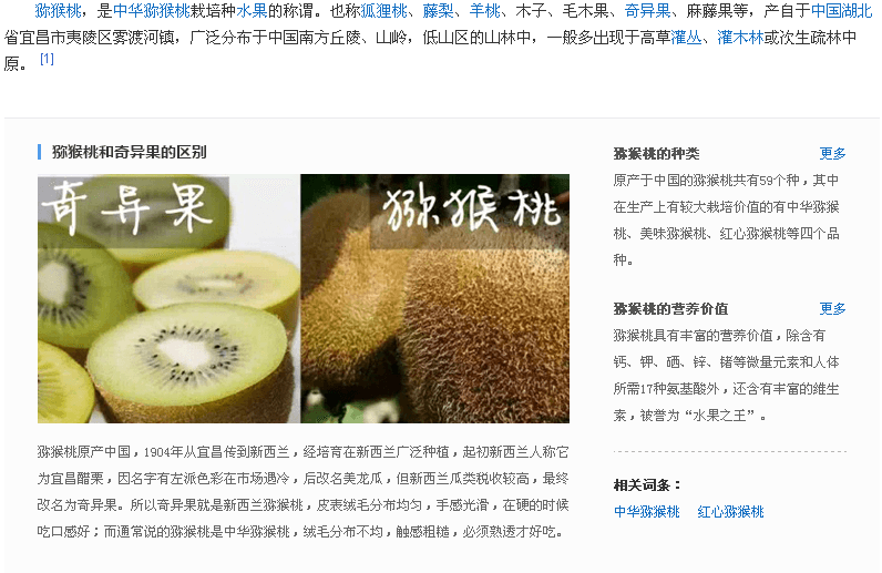 李时珍在《本草纲目》中描绘猕猴桃的形、色时说:“其形如梨,其色如桃,而猕猴喜食,故有诸名。”