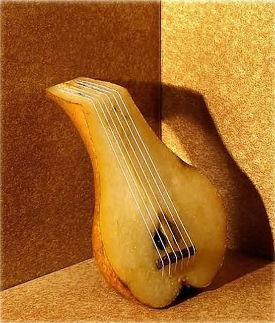 这是另一种创意,创作出的食品艺术与低音梨,创造一个美好的乐器。