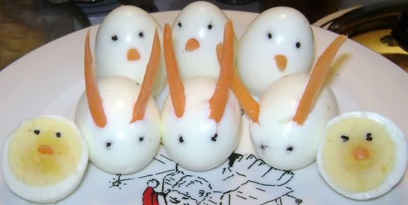 同样,煮硬的鸡蛋被用来创建小鸡正在等待一个不错的点击。