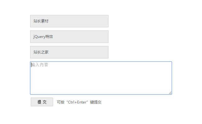 Ctrl+Enter键按钮提交表单代码