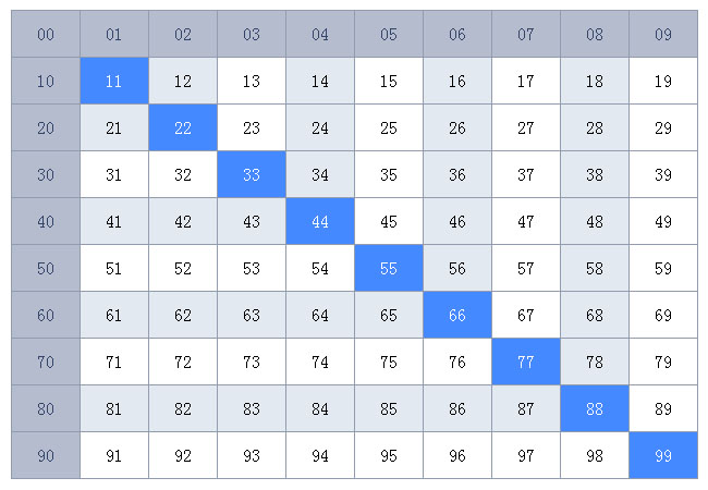 JS表格对角线高亮显示代码
