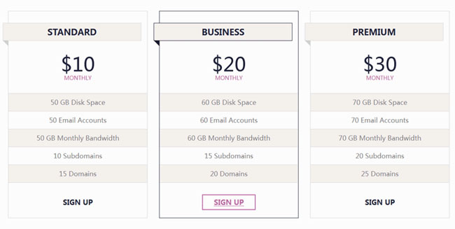 CSS3项目价格表样式代码