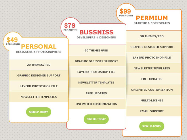 css3橙色价位表 css3橙色价位表代码下载