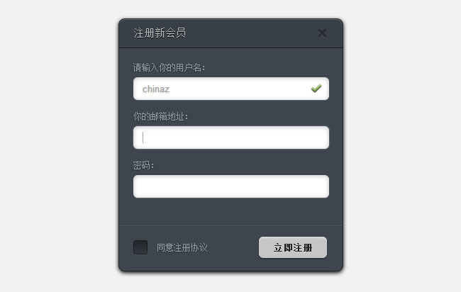 jquery+css3实现弹出层注册特效
