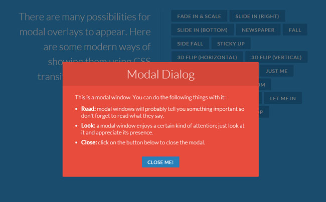 jQuery+CSS3过渡动画模态窗口特效
