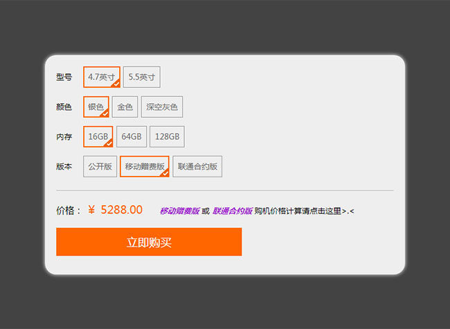 JS仿淘宝详情商品类型选择实例