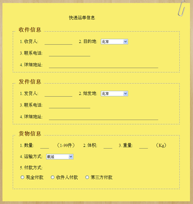 jquery快递单信息