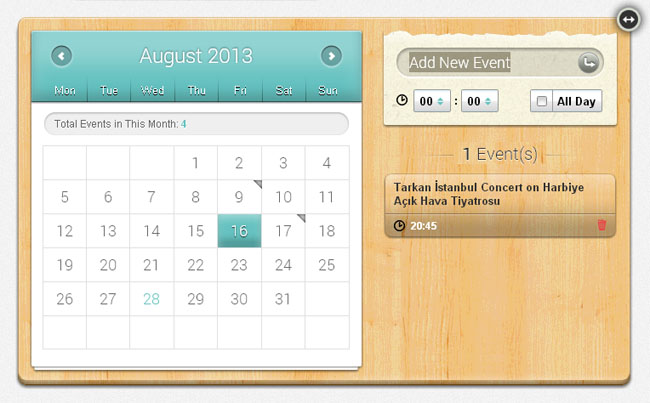 支持添加事件jQuery日历