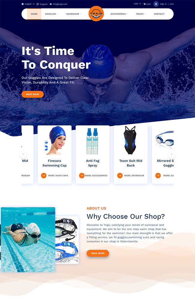 游泳用品商店HTML5网站模板
