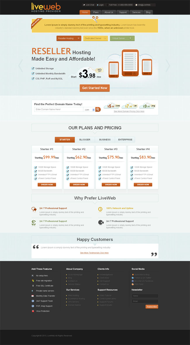 Web主机经销商html模板