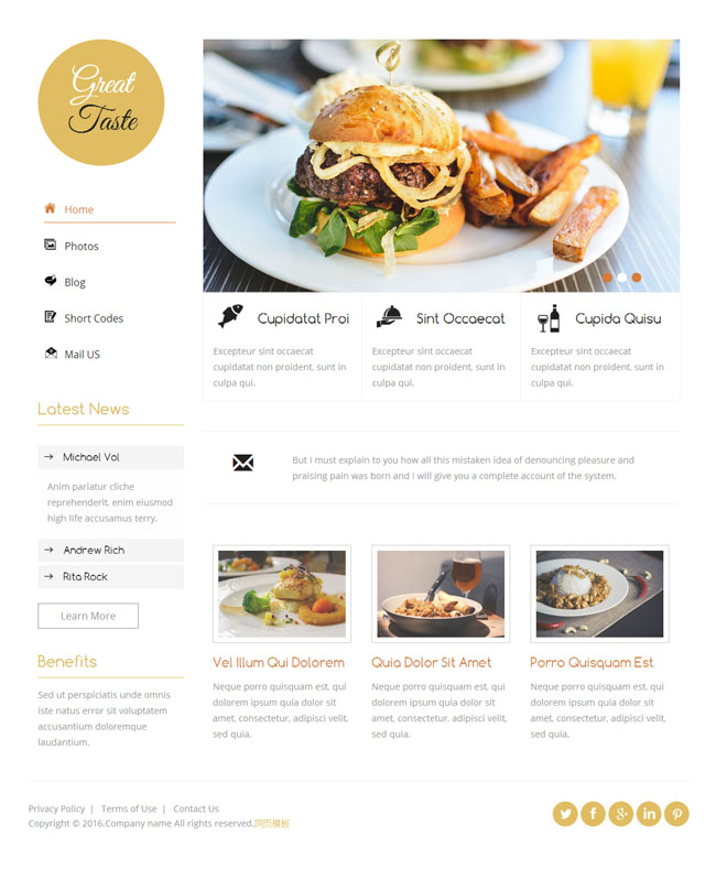 白色简洁美食博客模板下载