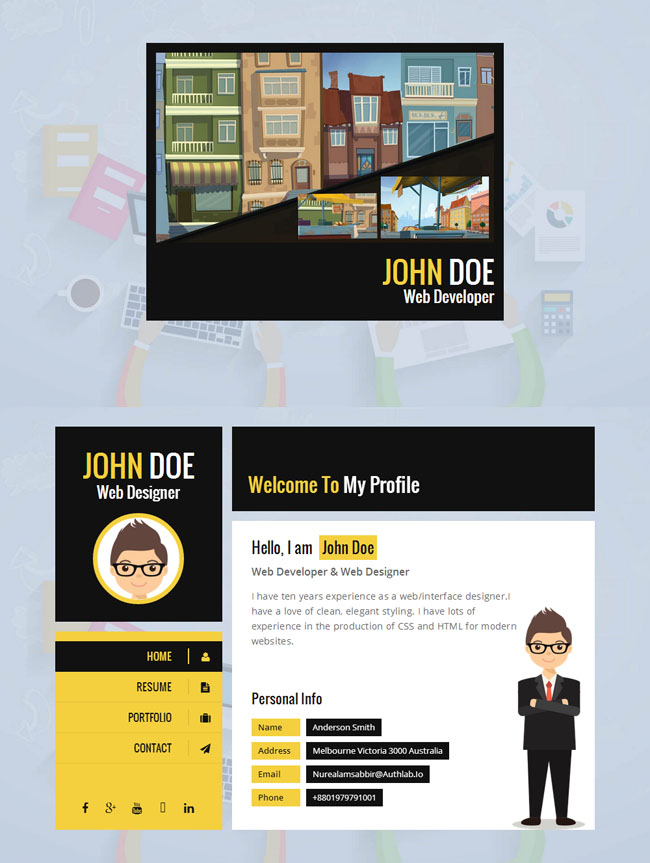 黄色HTML5个人简历模板