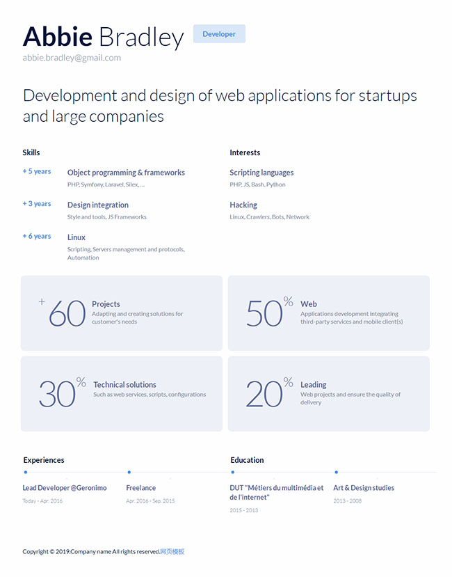 白色简洁开发者web简历模板