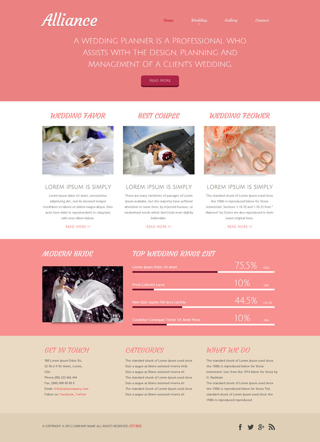 婚礼策划企业CSS3网站模板