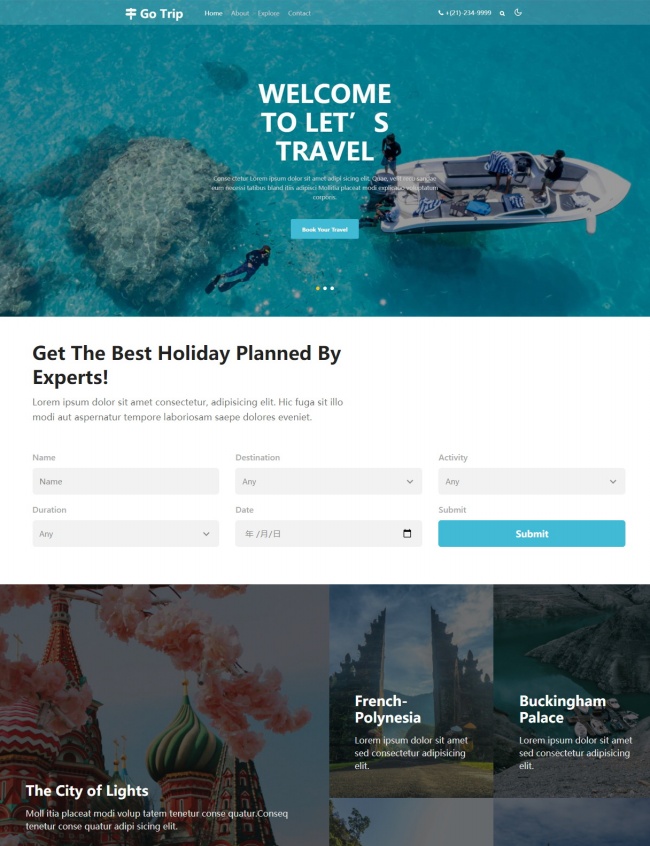 HTML5响应式假日旅行网站模板