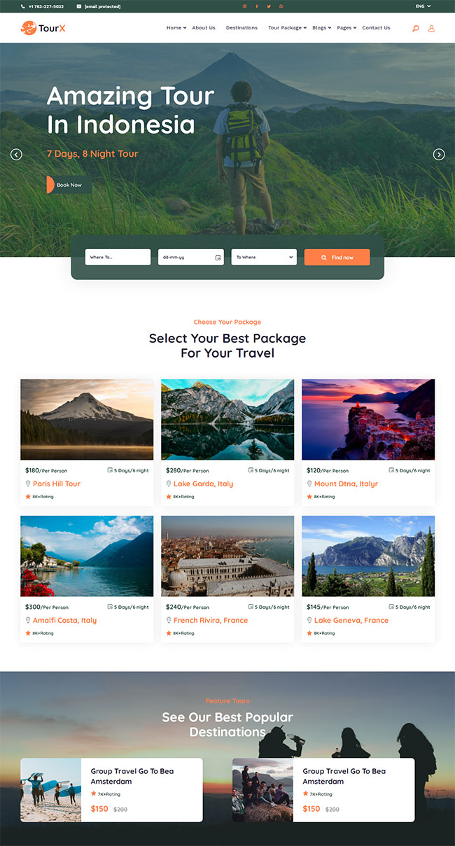 旅游套餐服务网站HTML5模板