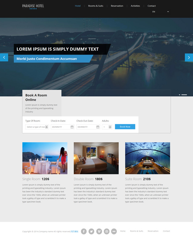 蓝色风格酒店网站模版paradise
